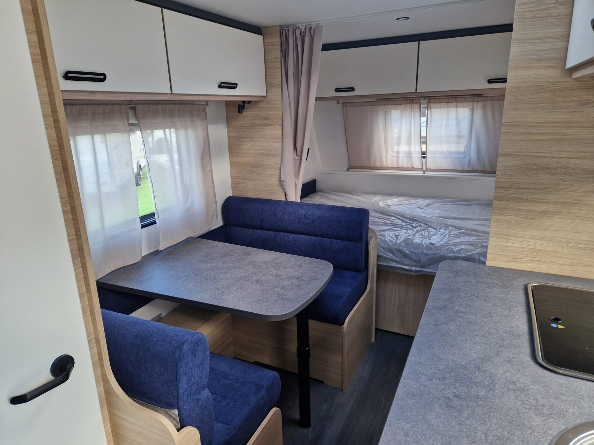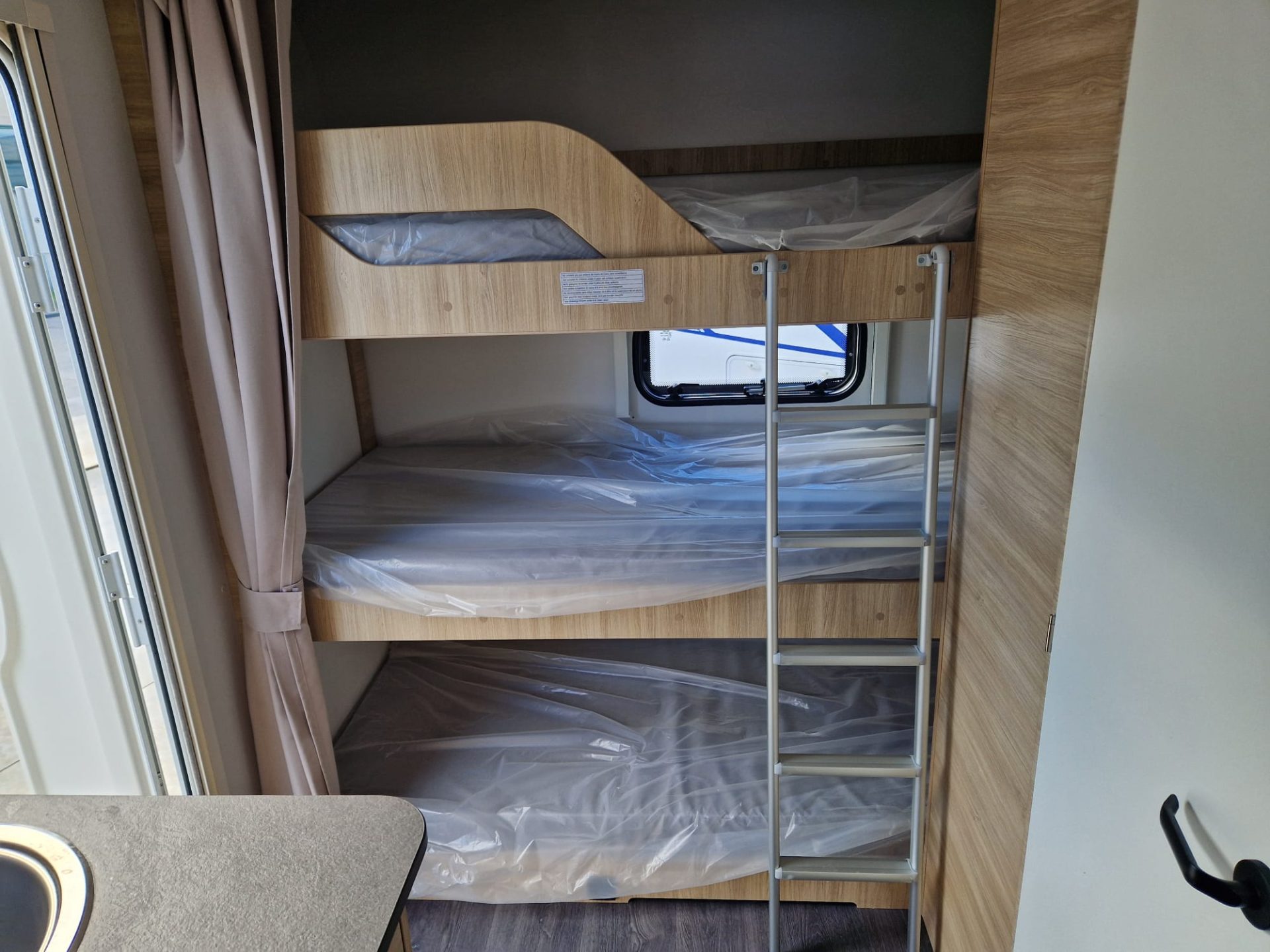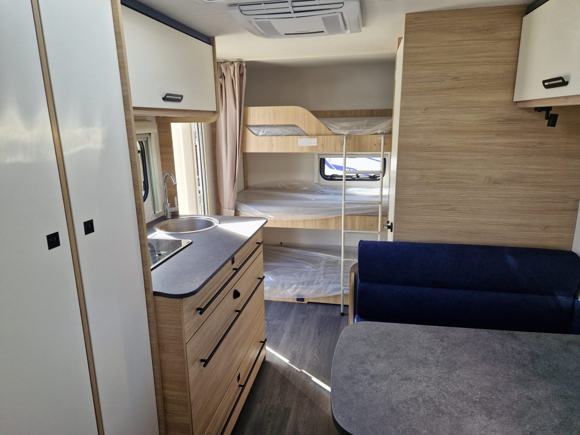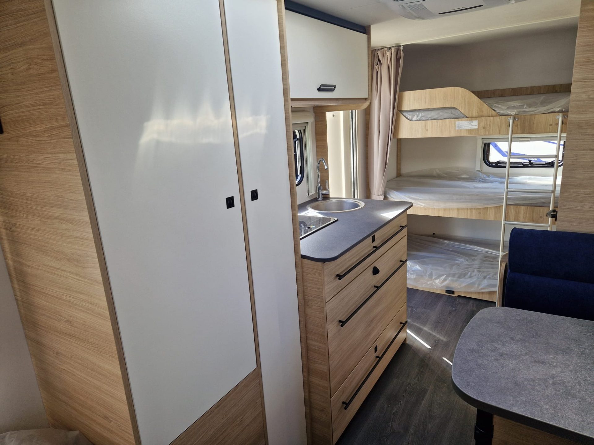 Gracias a sus tres literas en la parte trasera, la 487 responde perfectamente a las necesidades de las familias numerosas, sin tener que improvisar. En la parte delantera, una gran cama fija; en el centro, un comedor convertible que aporta una flexibilidad bienvenida. Frigorífico XL, cuarto de baño ingeniosamente diseñado, almacenamiento generoso. . . todo está pensado para viajar cómodamente con varias personas.